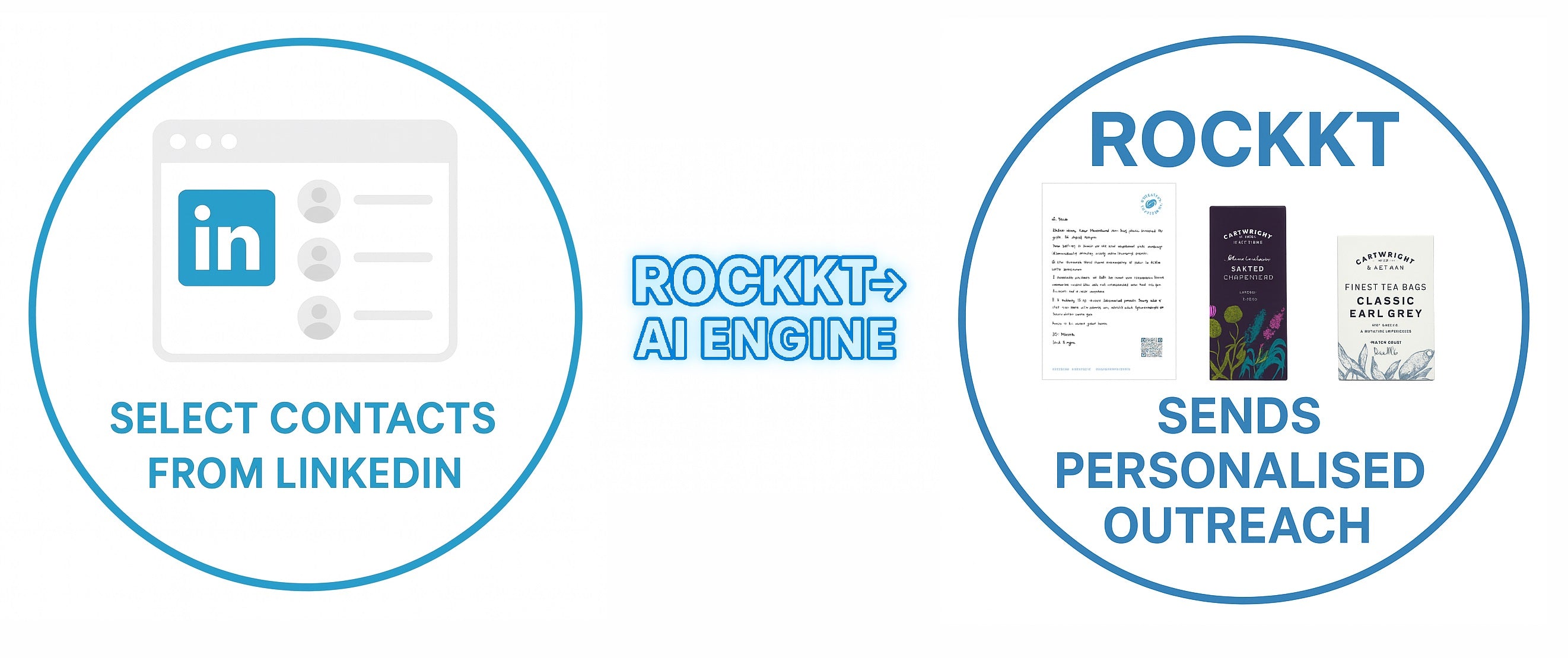 WIth a few clicks from LinkedIn, you can build a hyper personalised message using your own prebuilt templates. We then gain & verify all details before sending targeted marketing content. Rockkt is designed to help SDR's, RSE's & BDM's achieve their sales goals.