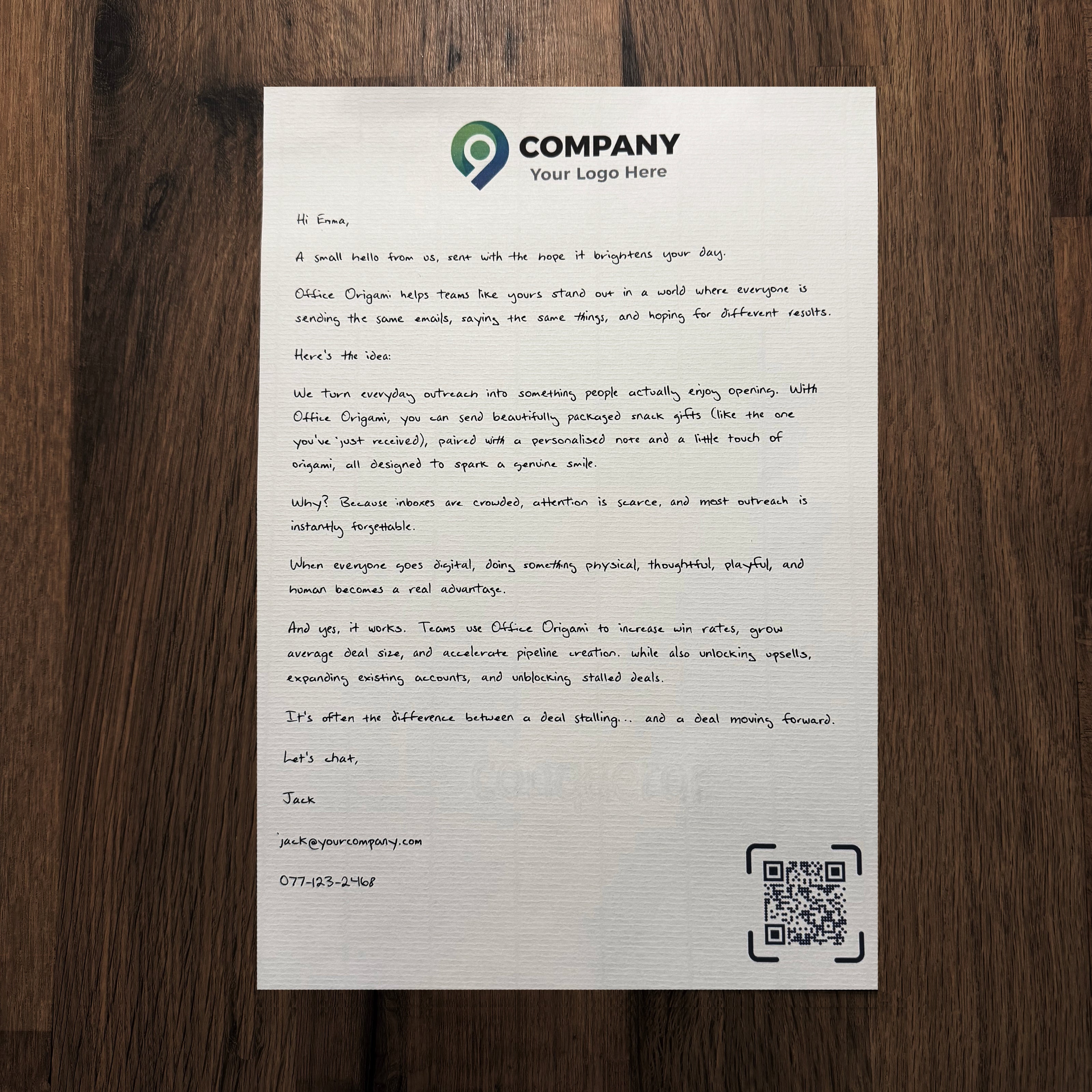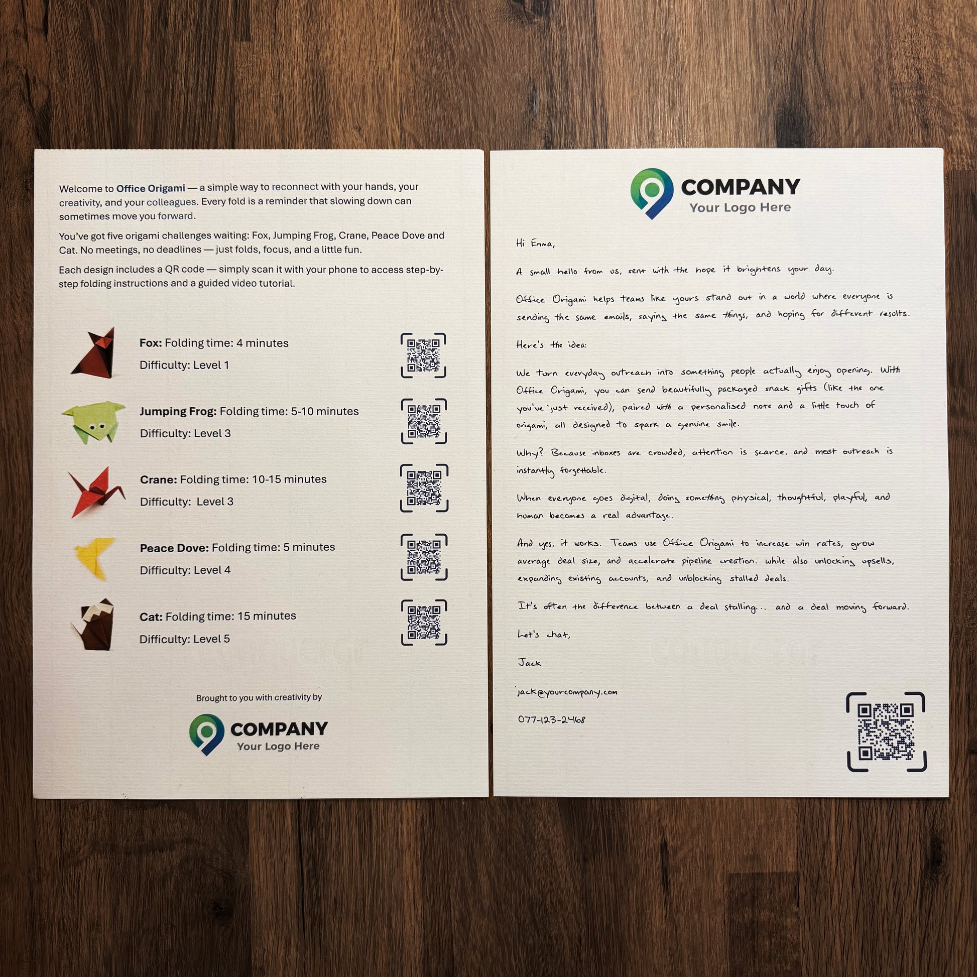 Each Office Origami pack also includes a beautifully written robot-handwritten letter — crafted with lifelike handwriting that feels completely personal. It’s our way of adding a thoughtful human touch powered by technology, reminding every recipient that even in an automated world, connection still matters.