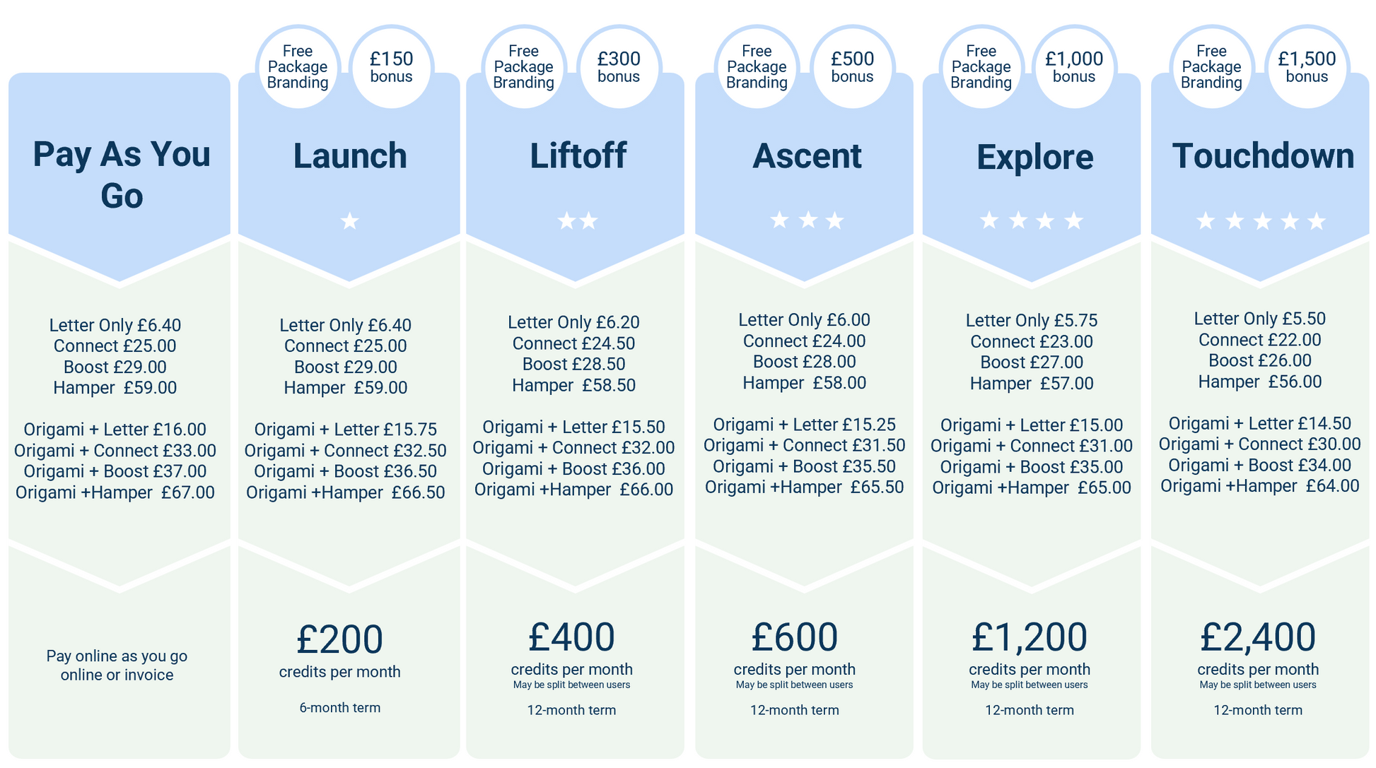 Simply top up above by adding credit. Make a single purchase or add more credit to send multiple items or send items in the future. Once you place your first order, you will receive email instructions on how to access the client zone & get sending.
